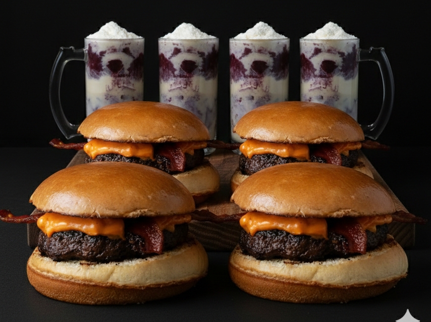 4 X-Bacon Artesanais mergulhados em quase meio kilo de Cheddar.. Acompanha como cortesia chuva de Bacon Crispy e Doritos.. Nesse combo você leva também uma coca 2lts que é pra ajudar a descer tudo isso e ser feliz! Muito Cheddar e amor no coração.. Pede logo vai, para de graça!